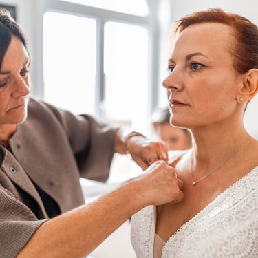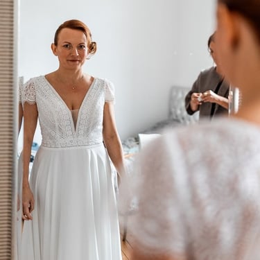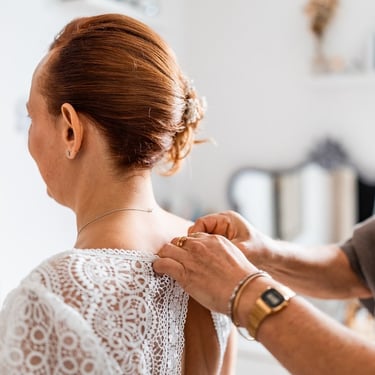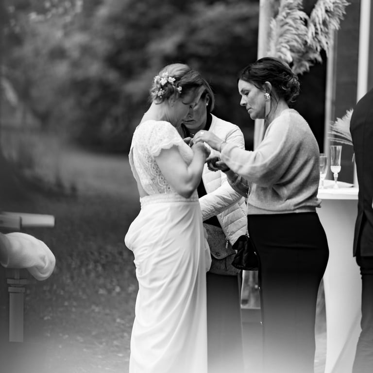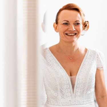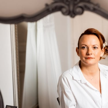 En tant que photographe de mariage, j’ai le privilège d’être au cœur de l’intimité : la robe prête à être fermée, les accessoires, la mise en beauté, les rituels des proches…