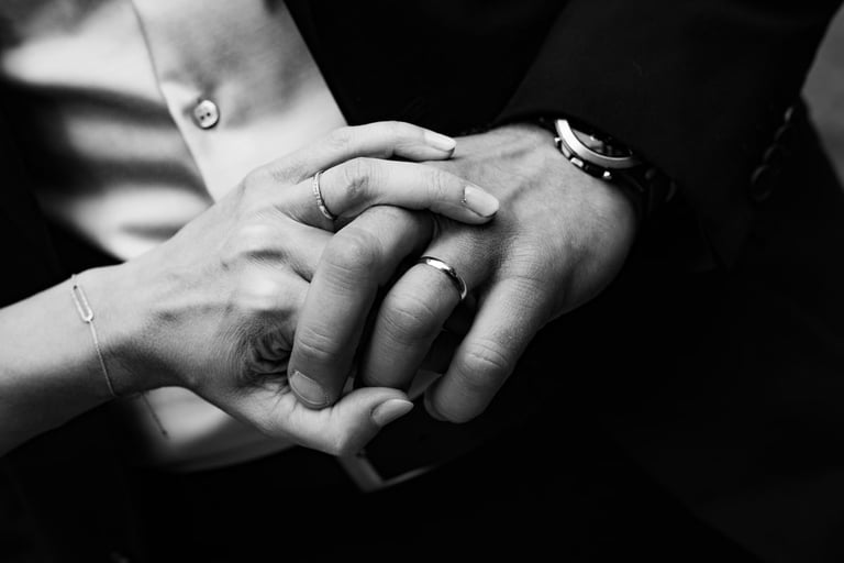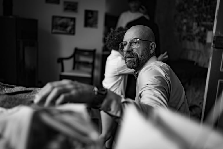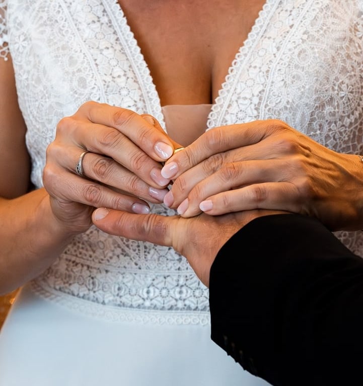 C’est aussi l’instant où je découvre la robe de mariée, les alliances, les chaussures, et tous les petits détails symboliques que j’aime capturer avant de m’éclipser quelques minutes pour les mettre en scène.