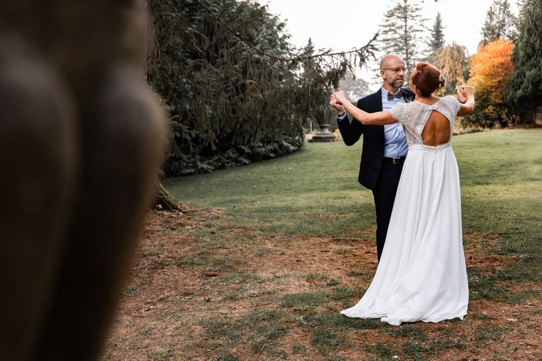 Le Manoir de Camblain, à Camblain-l’Abbé, est un lieu parfaitement adapté à un mariage mêlant élégance et esprit champêtre. On y profite d’un superbe parc arboré de 2 hectares, sublimé en octobre par les couleurs d’automne — un vrai plaisir pour un photographe de mariage.