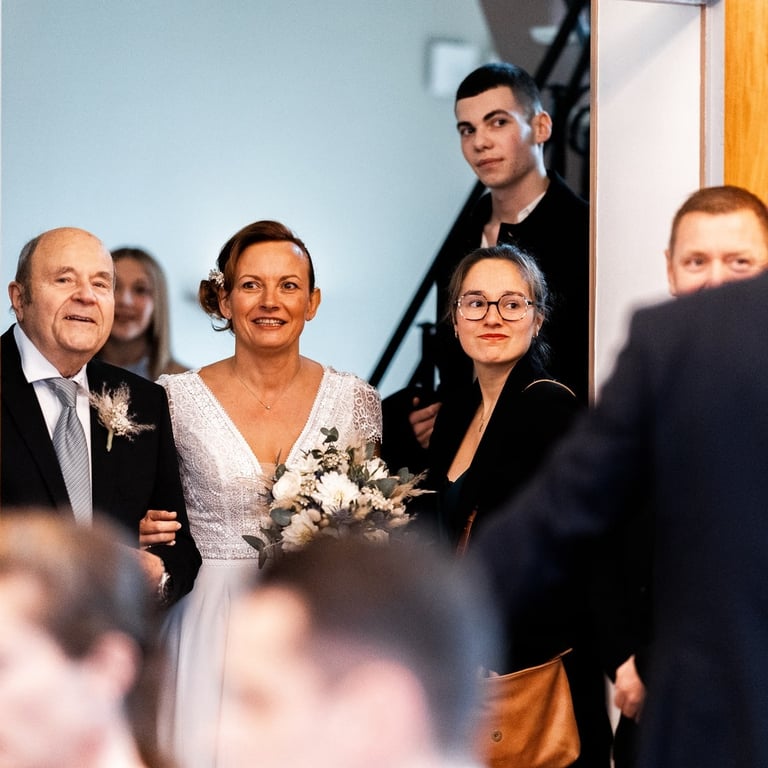 Les gestes, les regards, les échanges silencieux entre les mariés et les invités : voilà ce que je cherche à capter au-delà des poses classiques.