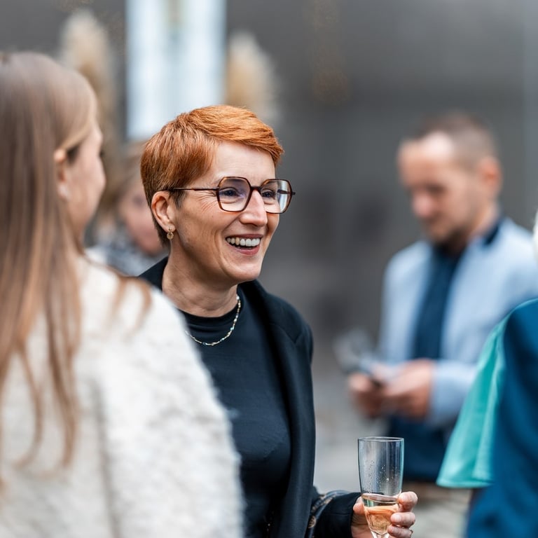 Les invités se retrouvent, discutent, trinquent ; l’ambiance s’installe.